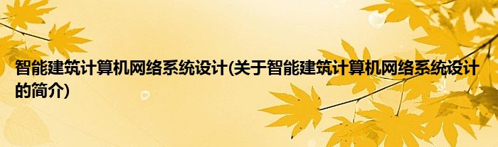 智能建筑计算机网络系统设计(关于智能建筑计算机网络系统设计的简介)