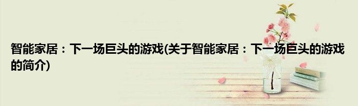 本文关于智能家居:下一场巨头的游戏的简介就讲解完毕,希望对大家有所帮助。