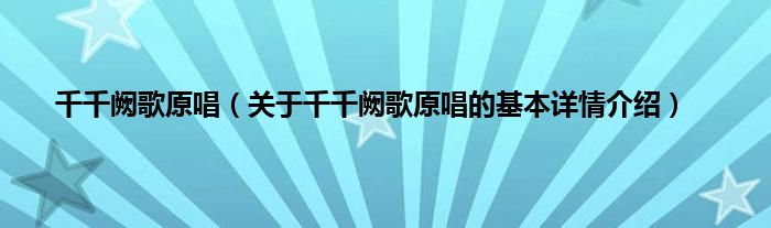 本文关于千千阙歌原唱的基本详情介绍就讲解完毕,希望对大家有所帮助。