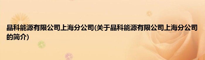 大家好,晶科能源有限公司上海分公司,关于晶科能源有限公司上海分公司的简介很多人还不知道,现在让我们一起来看看吧!