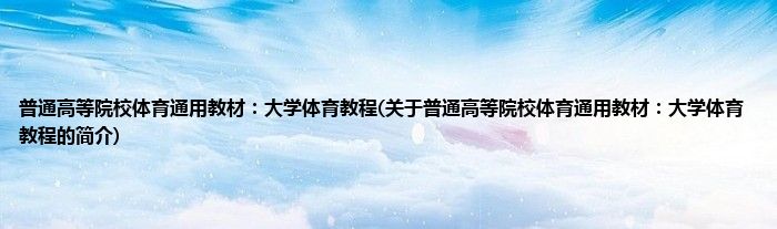 本文关于普通高等院校体育通用教材:大学体育教程的简介就讲解完毕,希望对大家有所帮助。