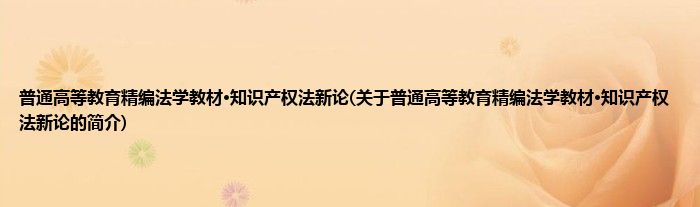 大家好,普通高等教育精编法学教材·知识产权法新论,关于普通高等教育精编法学教材·知识产权法新论的简介很多人还不知道,现在让我们一起来看看吧!