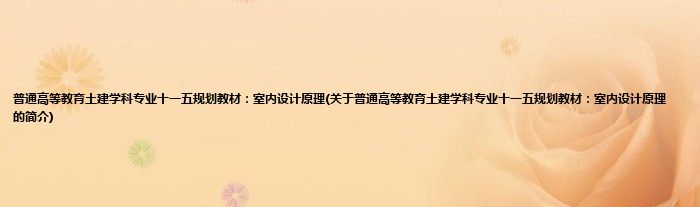 1、 《普通高等教育土建学科专业十一五规划教材:室内设计原理》是2006年中国建筑工业出版社出版的图书。