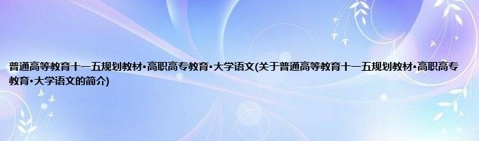 本文关于普通高等教育十一五规划教材·高职高专教育·大学语文的简介就讲解完毕,希望对大家有所帮助。