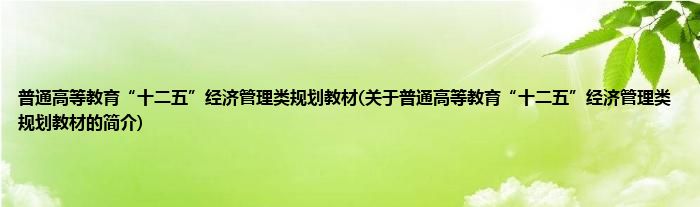 本文关于普通高等教育“十二五”经济管理类规划教材的简介就讲解完毕,希望对大家有所帮助。