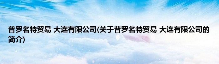 本文关于普罗名特贸易 大连有限公司的简介就讲解完毕,希望对大家有所帮助。