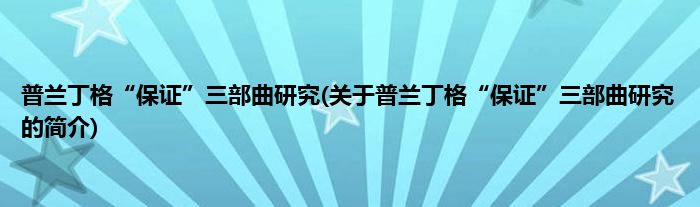 本文关于普兰丁格“保证”三部曲研究的简介就讲解完毕,希望对大家有所帮助。