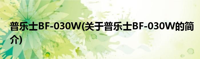本文关于普乐士BF-030W的简介就讲解完毕,希望对大家有所帮助。