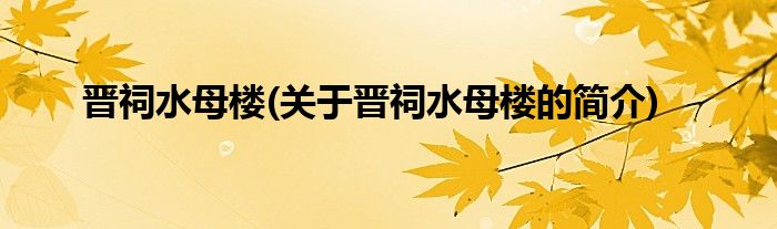 大家好,晋祠水母楼,关于晋祠水母楼的简介很多人还不知道,现在让我们一起来看看吧!