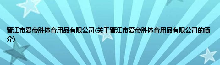 本文关于晋江市爱帝胜体育用品有限公司的简介就讲解完毕,希望对大家有所帮助。