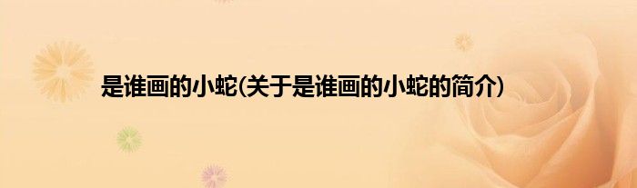 大家好,是谁画的小蛇,关于是谁画的小蛇的简介很多人还不知道,现在让我们一起来看看吧!