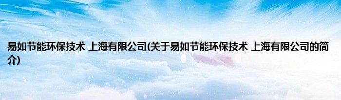 本文关于易如节能环保技术 上海有限公司的简介就讲解完毕,希望对大家有所帮助。