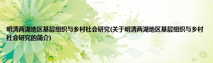 大家好,明清两湖地区基层组织与乡村社会研究,关于明清两湖地区基层组织与乡村社会研究的简介很多人还不知道,现在让我们一起来看看吧!