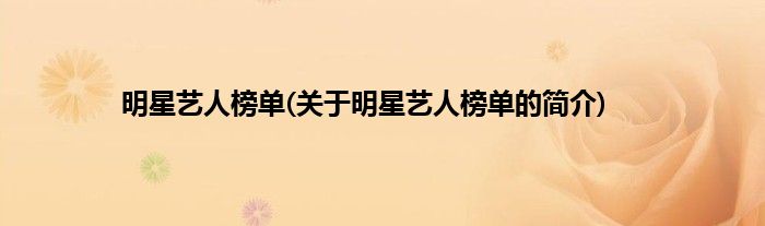 大家好,明星艺人榜单,关于明星艺人榜单的简介很多人还不知道,现在让我们一起来看看吧!