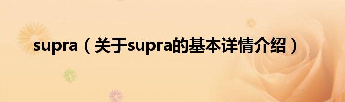 大家好我是小蝌蚪,supra,关于supra的基本详情介绍很多人还不知道,那么现在让我们一起来看看吧!