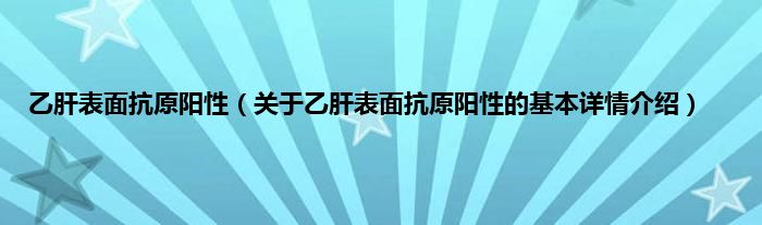 本文关于乙肝表面抗原阳性的基本详情介绍就讲解完毕,希望对大家有所帮助。