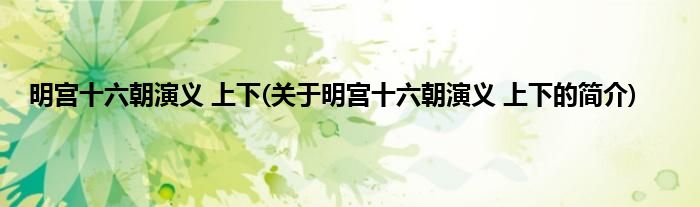 本文关于明宫十六朝演义 上下的简介就讲解完毕,希望对大家有所帮助。