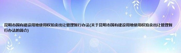 大家好,昆明市国有建设用地使用权拍卖出让管理暂行办法,关于昆明市国有建设用地使用权拍卖出让管理暂行办法的简介很多人还不知道,现在让我们一起来看看吧!