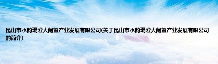 本文关于昆山市水韵琨澄大闸蟹产业发展有限公司的简介就讲解完毕,希望对大家有所帮助。