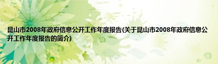 大家好,昆山市2008年政府信息公开工作年度报告,关于昆山市2008年政府信息公开工作年度报告的简介很多人还不知道,现在让我们一起来看看吧!