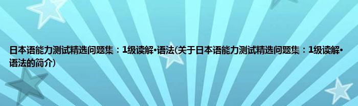 本文关于日本语能力测试精选问题集:1级读解·语法的简介就讲解完毕,希望对大家有所帮助。