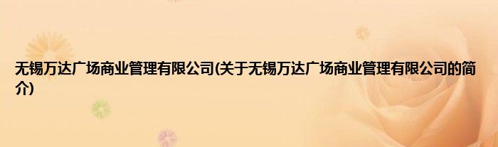 本文关于无锡万达广场商业管理有限公司的简介就讲解完毕,希望对大家有所帮助。