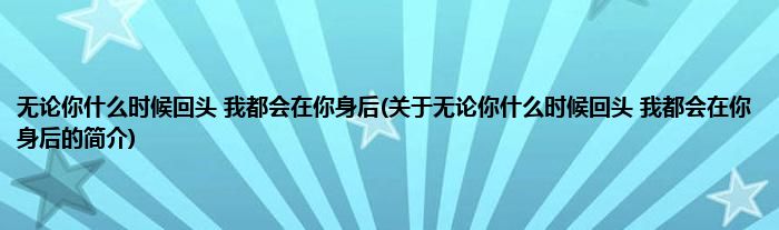 本文关于无论你什么时候回头,我都会在你身后的简介就讲解完毕,希望对大家有所帮助。