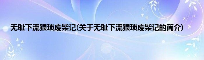 本文关于无耻下流猥琐废柴记的简介就讲解完毕,希望对大家有所帮助。