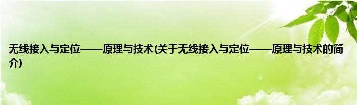 本文关于无线接入与定位——原理与技术的简介就讲解完毕,希望对大家有所帮助。