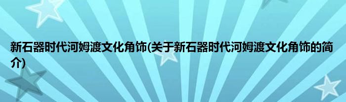 大家好,新石器时代河姆渡文化角饰,关于新石器时代河姆渡文化角饰的简介很多人还不知道,现在让我们一起来看看吧!