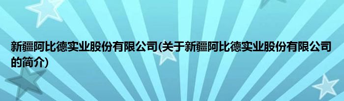 本文关于新疆阿比德实业股份有限公司的简介就讲解完毕,希望对大家有所帮助。