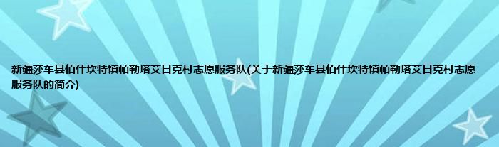 本文关于新疆莎车县佰什坎特镇帕勒塔艾日克村志愿服务队的简介就讲解完毕,希望对大家有所帮助。