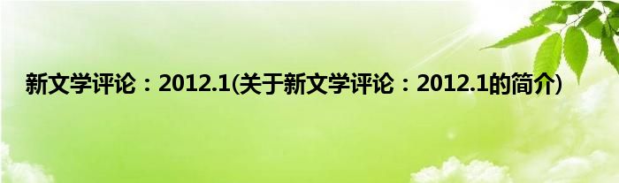 大家好,新文学评论:2012.1,关于新文学评论:2012.1的简介很多人还不知道,现在让我们一起来看看吧!