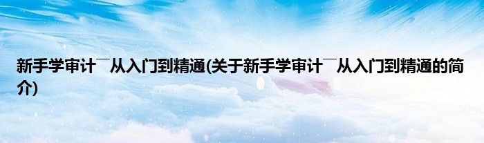 大家好,新手学审计――从入门到精通,关于新手学审计――从入门到精通的简介很多人还不知道,现在让我们一起来看看吧!