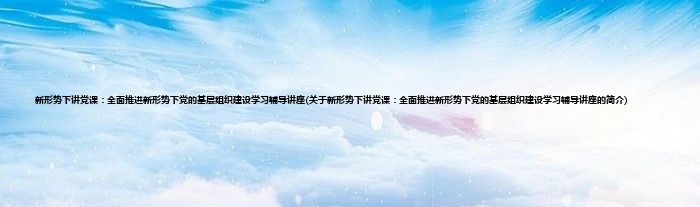 大家好,新形势下讲党课:全面推进新形势下党的基层组织建设学习辅导讲座,关于新形势下讲党课:全面推进新形势下党的基层组织建设学习辅导讲座的简介很多人还不知道,现在让我们一起来看看吧!