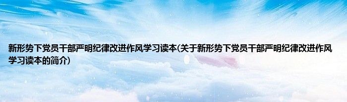 大家好,新形势下党员干部严明纪律改进作风学习读本,关于新形势下党员干部严明纪律改进作风学习读本的简介很多人还不知道,现在让我们一起来看看吧!