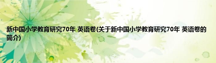 新中国小学教育研究70年英语卷(关于新中国小学教育研究70年英语卷的简介)