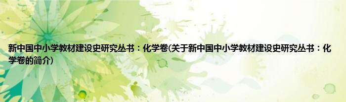 新中国中小学教材建设史研究丛书:化学卷(关于新中国中小学教材建设史研究丛书:化学卷的简介)