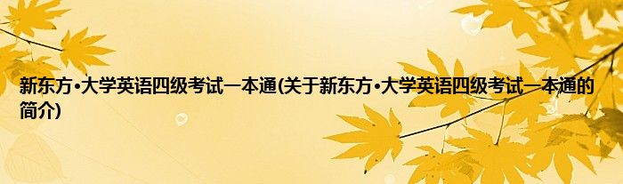 本文关于新东方·大学英语四级考试一本通的简介就讲解完毕,希望对大家有所帮助。