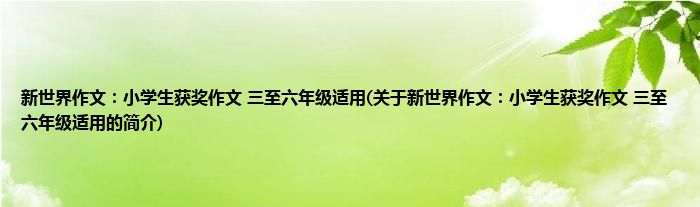 新世界作文:小学生获奖作文 三至六年级适用(关于新世界作文:小学生获奖作文 三至六年级适用的简介)