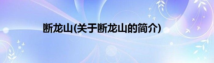 大家好,断龙山,关于断龙山的简介很多人还不知道,现在让我们一起来看看吧!