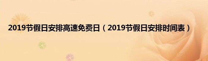 大家好,精选小编来为大家解答以上问题。2019节假日安排高速免费日,2019节假日安排时间表很多人还不知道,现在让我们一起来看看吧!