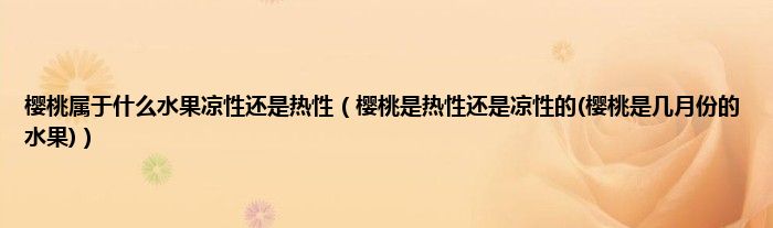大家好,小科来为大家解答以上问题。樱桃属于什么水果凉性还是热性,樱桃是热性还是凉性的(樱桃是几月份的水果)很多人还不知道,现在让我们一起来看看吧!