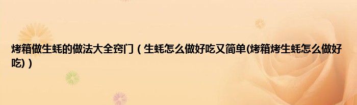 大家好,小科来为大家解答以上问题。烤箱做生蚝的做法大全窍门,生蚝怎么做好吃又简单(烤箱烤生蚝怎么做好吃)很多人还不知道,现在让我们一起来看看吧!