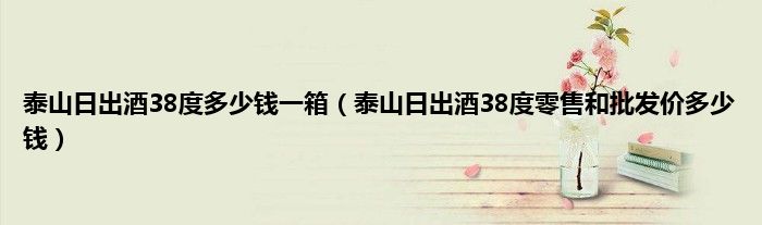 大家好,小科来为大家解答以上问题。泰山日出酒38度多少钱一箱,泰山日出酒38度零售和批发价多少钱很多人还不知道,现在让我们一起来看看吧!