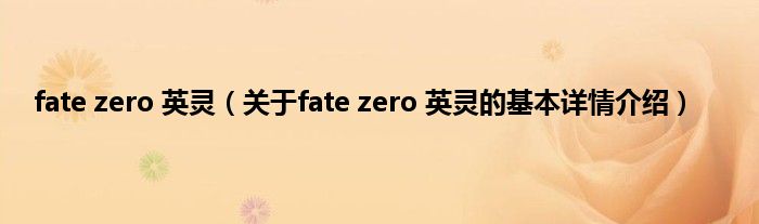 本文关于fate zero 英灵的基本详情介绍就讲解完毕,希望对大家有所帮助。