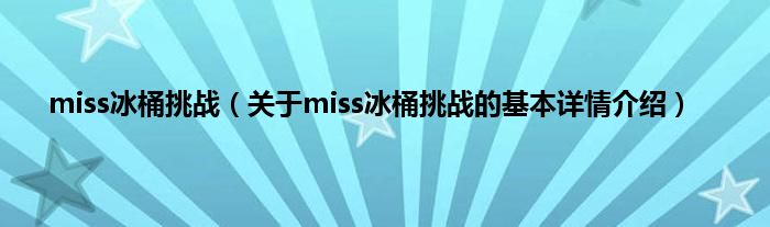 本文关于miss冰桶挑战的基本详情介绍就讲解完毕,希望对大家有所帮助。