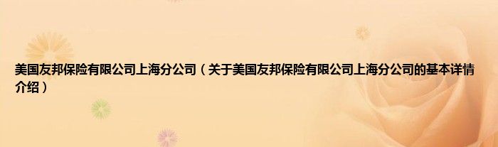 本文关于美国友邦保险有限公司上海分公司的基本详情介绍就讲解完毕,希望对大家有所帮助。
