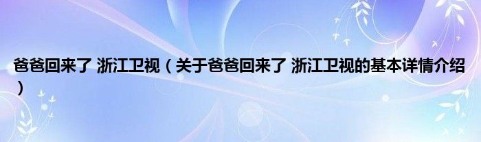 本文关于爸爸回来了 浙江卫视的基本详情介绍就讲解完毕,希望对大家有所帮助。