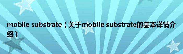 本文关于mobile substrate的基本详情介绍就讲解完毕,希望对大家有所帮助。